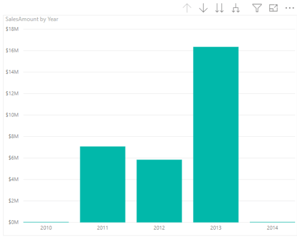 To recap quickly, we were using the AdventureWorksDW2014 data warehouse and we added SalesAmount and OrderDate from the FactInternetSales table. We want to insert a matrix table onto the report as those work with the drill down feature whereas the regular table visualization does not.