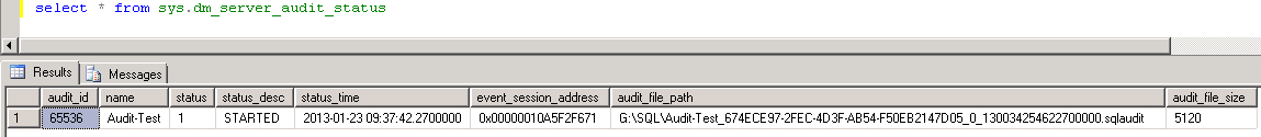 - sys.dm_server_audit_status displays information about the status of your audits.