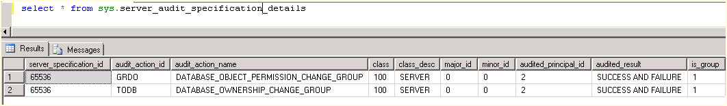 - sys.server_audit_specification_details display detailed information about the specifications.
